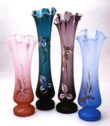 Выставочный залХудожественное стеклоРедактор и ведущая Лиля Пальвелева Лиля Пальвелева: Название города Гусь-Хрустальный прозрачно. Все знают - здесь производят и гранят хрусталь. Но не только. Еще художественное стекло самого высокого качества. Это продукция небольшого предприятия под названием <Художественные промыслы> - вазы, подсвечники и то, что принято называть <мелкой пластикой>. Дизайн - современный. Цвета - самых чистых, насыщенных тонов: изумрудно-зеленый, рубиновый, густо-синий, ярко-оранжевый. Кроме того, многие вещи еще и расписаны красками, эмалями и золотом. Все это великолепие сейчас можно увидеть в Москве, в Фонде народно-художественных промыслов, на выставке <Волшебный калейдоскоп>. Наталья Полонникова, куратор выставки, подчеркивает: в Гусь-Хрустальном владеют уникальными технологиями.